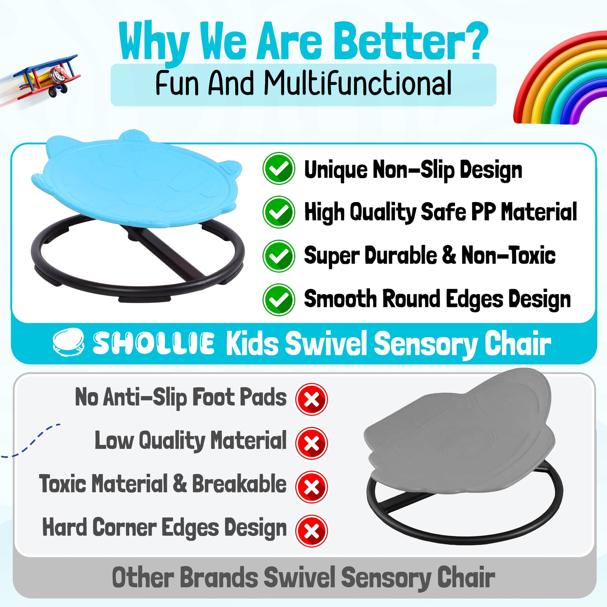 - This sensory autism spinning chair features a heavy-duty metal base, 10mm thick PP seat, and reinforced non-slip structure, ensuring safe spins every time.